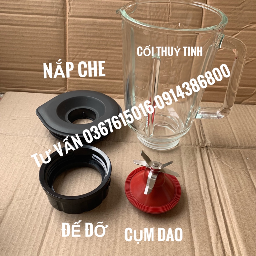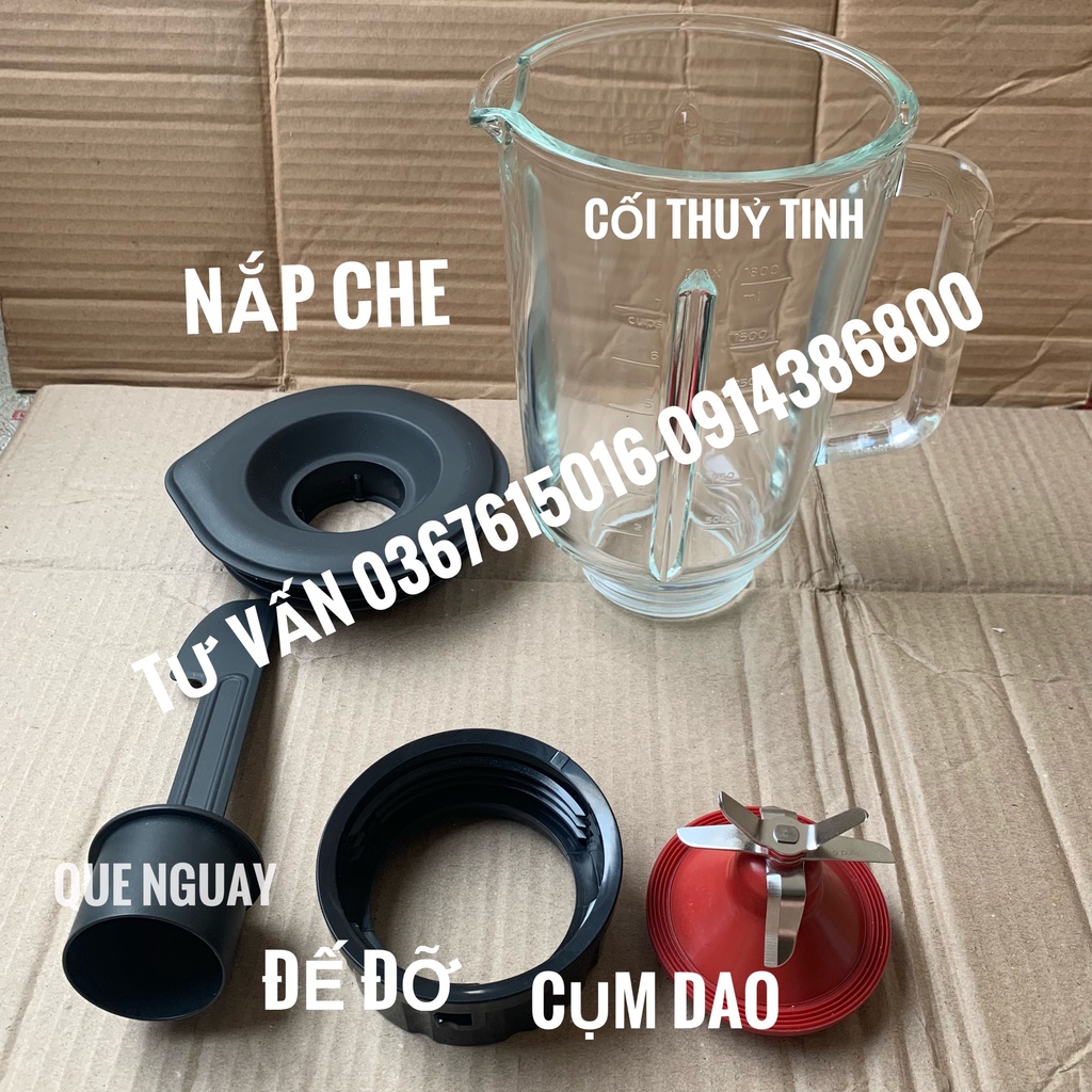 Phụ kiện máy xay philips hr 3652, probrend 6 - cối thủy tinh, cụm dao, đế đỡ, que nguấy------------------------------------------------------
