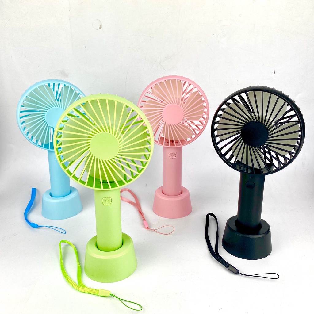 - Quạt được đi kèm 1 chân đế giúp trở thành 1 chiếc quạt để bàn học hoặc bàn văn phòng làm việc. Ngoài ra còn có 1 dây đeo giúp b mang theo quạt mini đi bên minh