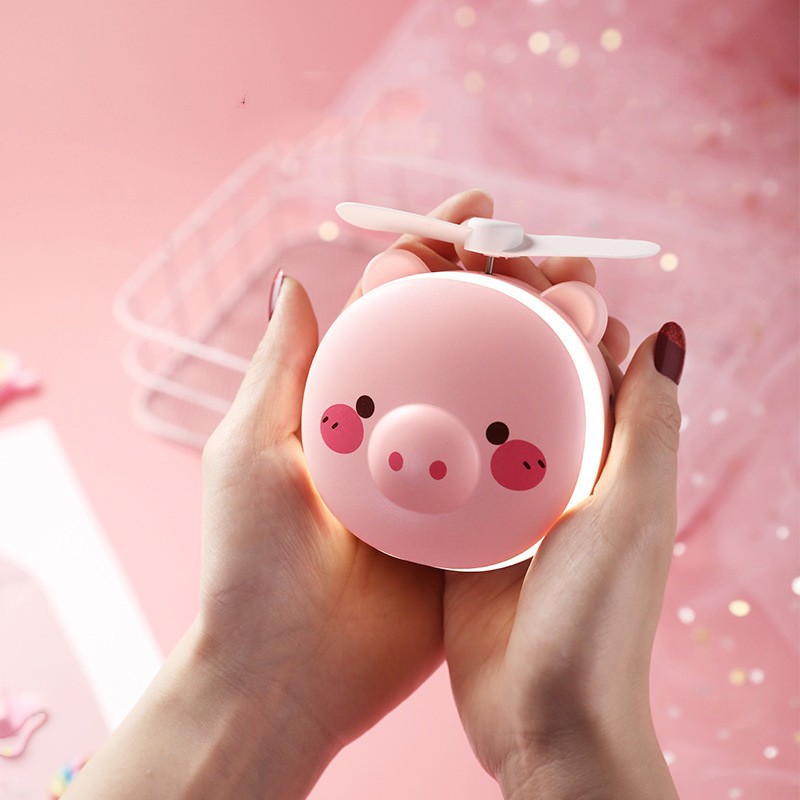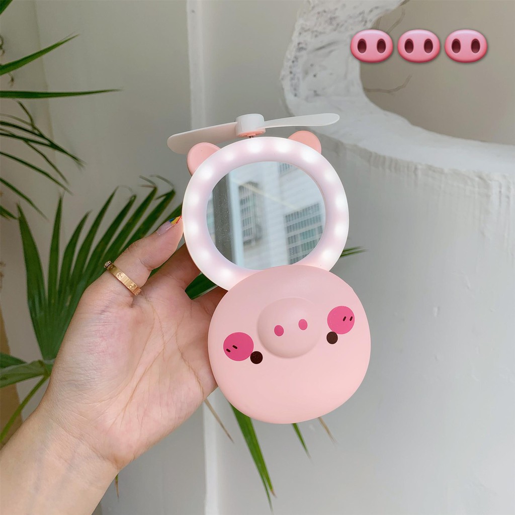 Điện Thoại & Phụ Kiện > Phụ kiện > Quạt USB & Quạt điện thoại || [Mã ELHA22 giảm 5% đơn 300K] Quạt heo sạc điện mini có đèn và gương soi 3 trong 1Còn hàng