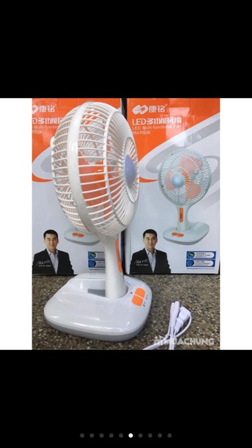 Quạt tích điện mini để bàn kèm đèn ledCó 2 chế độ ánh sáng, 2 chế độ công tắc quạt