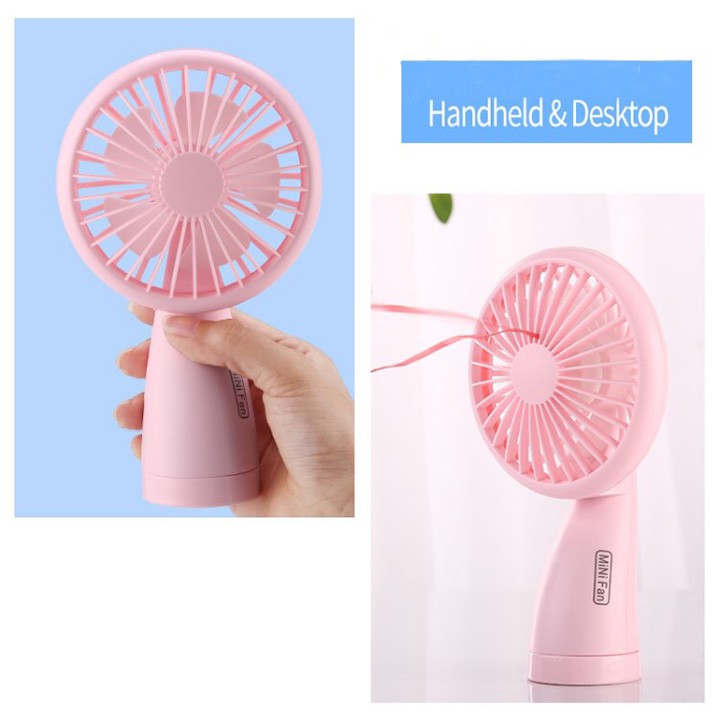 - Quạt mini cầm tay có báng cầm tay thiết kế thông minh, có mút lót chân chống trơn trượt, tiện lợi để bàn hoặc mang đi du lịch, đi học hay đi làm....
