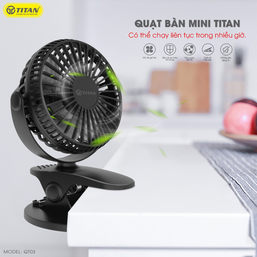 Điện Thoại & Phụ Kiện > Phụ kiện > Quạt USB & Quạt điện thoại || [Mã ELHA22 giảm 5% đơn 300K] Quạt Mini để bàn TITAN - QT03Còn hàng