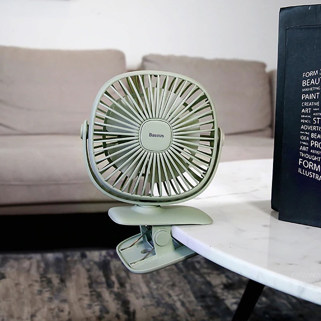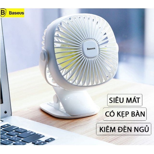 Giới thiệu [Mã ELHA22 giảm 5% đơn 300K] Quạt tích điện mini kẹp bàn có đèn Baseus chính hãng