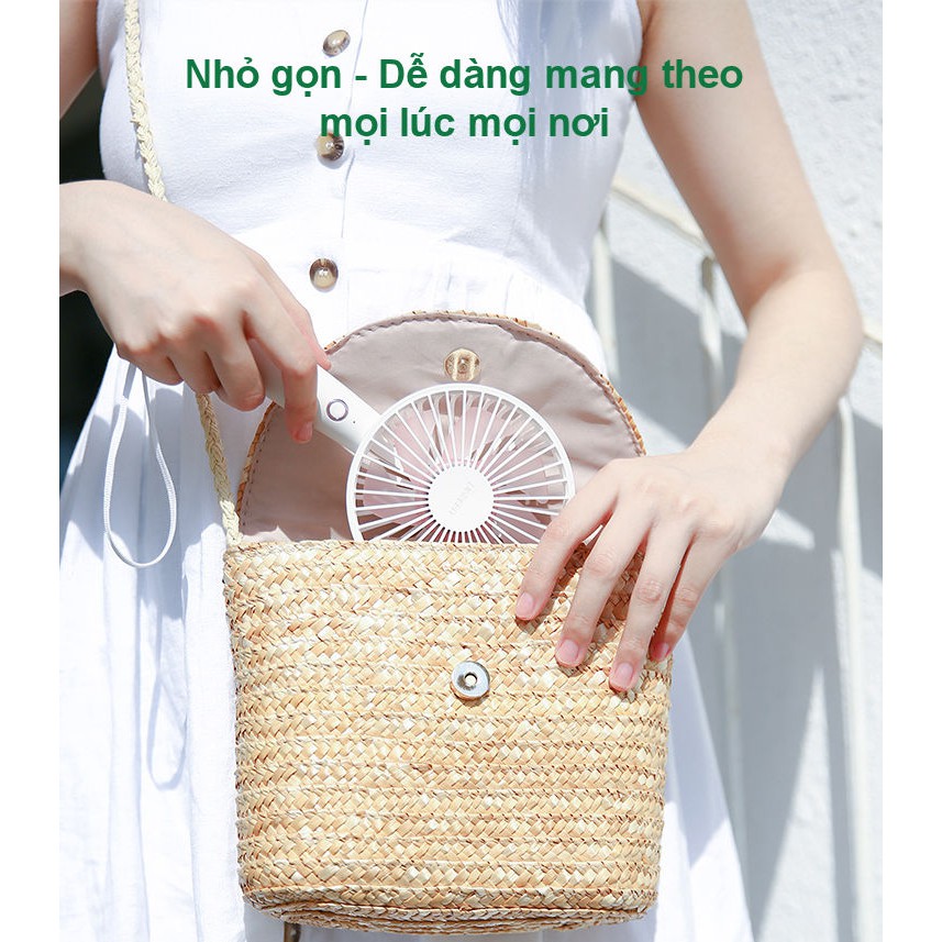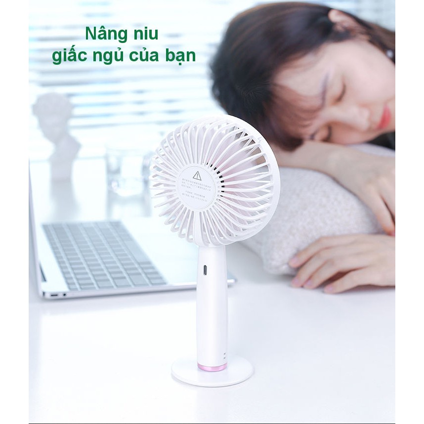 Quạt sạc tích điện mini cổng USB type C cầm tay hoặc đặt bàn dung lượng 2500mAhThiết kế nhỏ gọn chắc chắn với đế silicon chống trơn trượt, tốc độ gió êm với 7 cánh, có móc treo tay dễ dàng mang theo mọi lúc mọi nơi