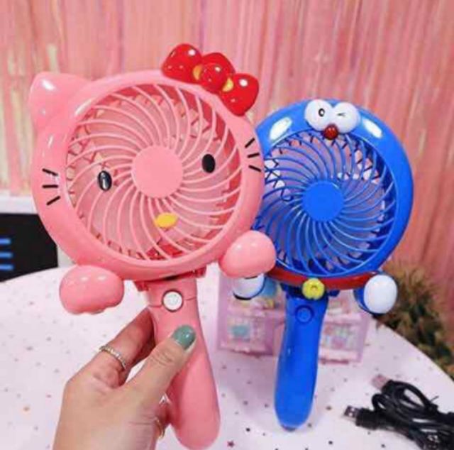 Quạt Sạc Tay Cầm Đoremon, Hello Kitty