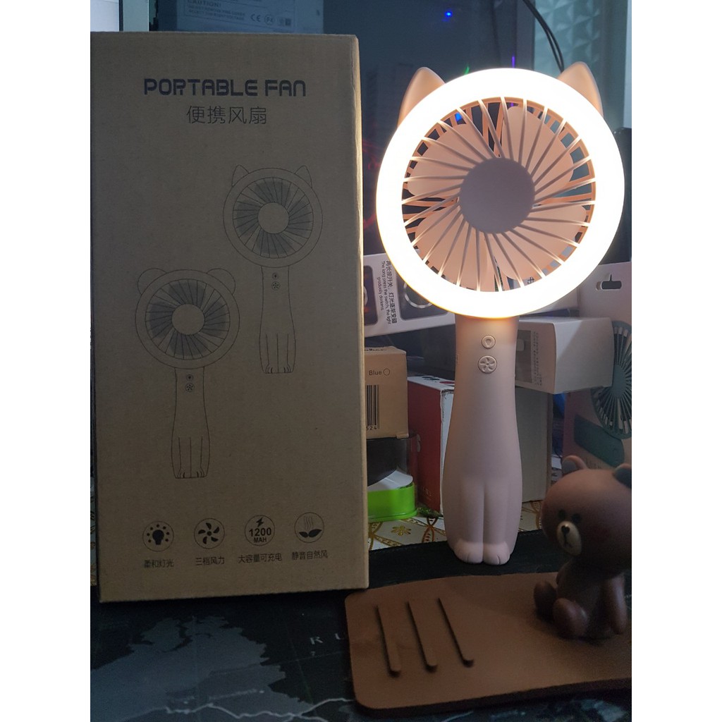 Điện Thoại & Phụ Kiện > Phụ kiện > Quạt USB & Quạt điện thoại || [Mã ELHA22 giảm 5% đơn 300K] Quạt mini cầm tay đuôi mèo 2515 để bàn có 2 kiểu led và 3 cấp độCòn hàng