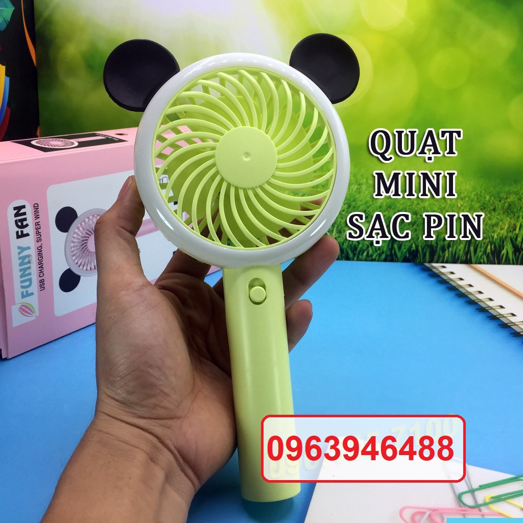 [Mã ELHA22 giảm 5% đơn 300K] Quạt Mini 3 Tốc Độ Gió, Có Đèn Led Chơi TikTok - Cực Dẹp - Tặng Kèm Pin Sạc