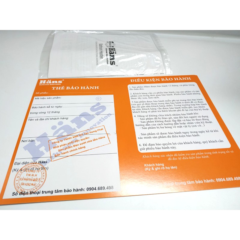 Thương hiệu: Hans | Xem thêm các sản phẩm Thiết bị sưởi ấm của HansMô tả ngắn