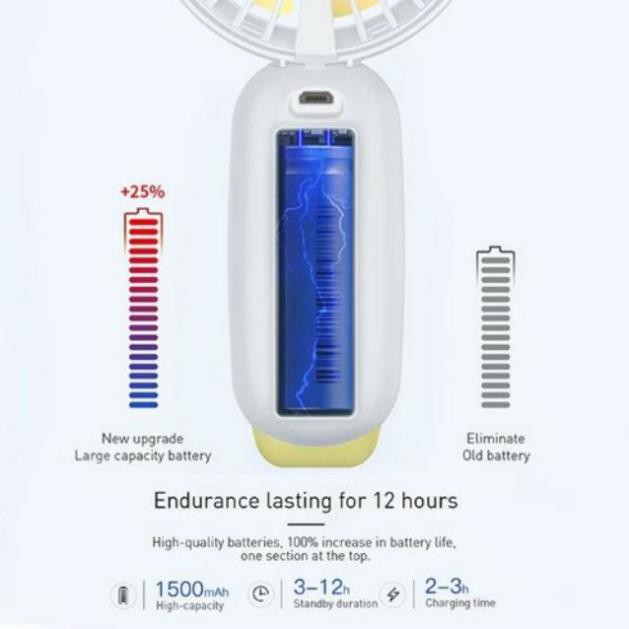 Quạt cầm tay pin sạc có đèn Led Baseus chính hãngQuạt cầm tay có đèn Led ngộ nghĩnh và tiện ích