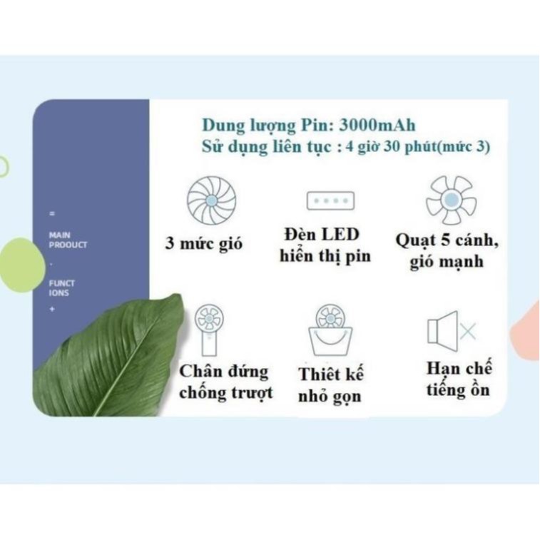 Quạt tích điện mini cầm tay Yoobao F3 3000mAh để bàn làm việc tăng kèm dây cao su🍀Giới thiệu sản phẩm quạt YOOBAO 3000mah: