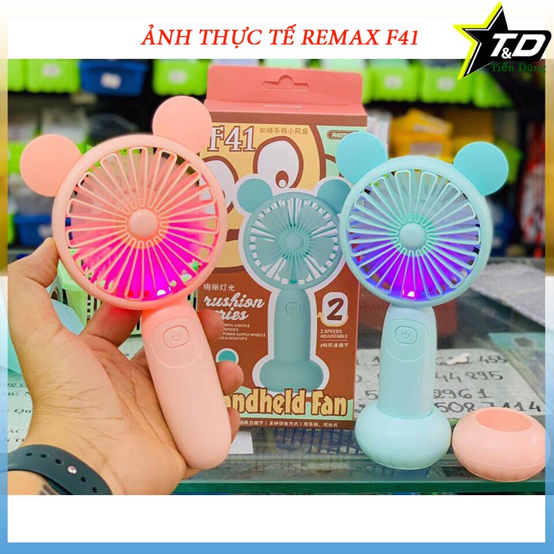 Quạt cầm tay remax f41 handheld fan dòng 5 cách quạt xạc pin có đế.***LƯU Ý : Shop giao màu ngẫu nhiên , nên khách hàng có thế nhăn tin hỏi shop .