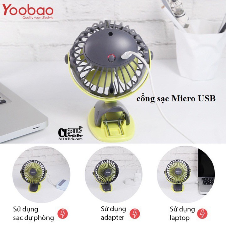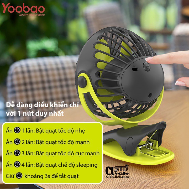 [Mã ELHA22 giảm 5% đơn 300K] QUẠT KẸP ĐỂ BÀN YOOBAO Y-F04 6.400MAH CHÍNH HÃNG HÀNG CHUẨN