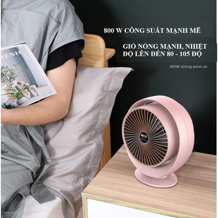 Giới thiệu [Mã ELHA22 giảm 5% đơn 300K] Quạt sưởi mini 2 chiều để bàn Heater Fan công suất 800W làm ấm phòng nhanh trong 5 phút