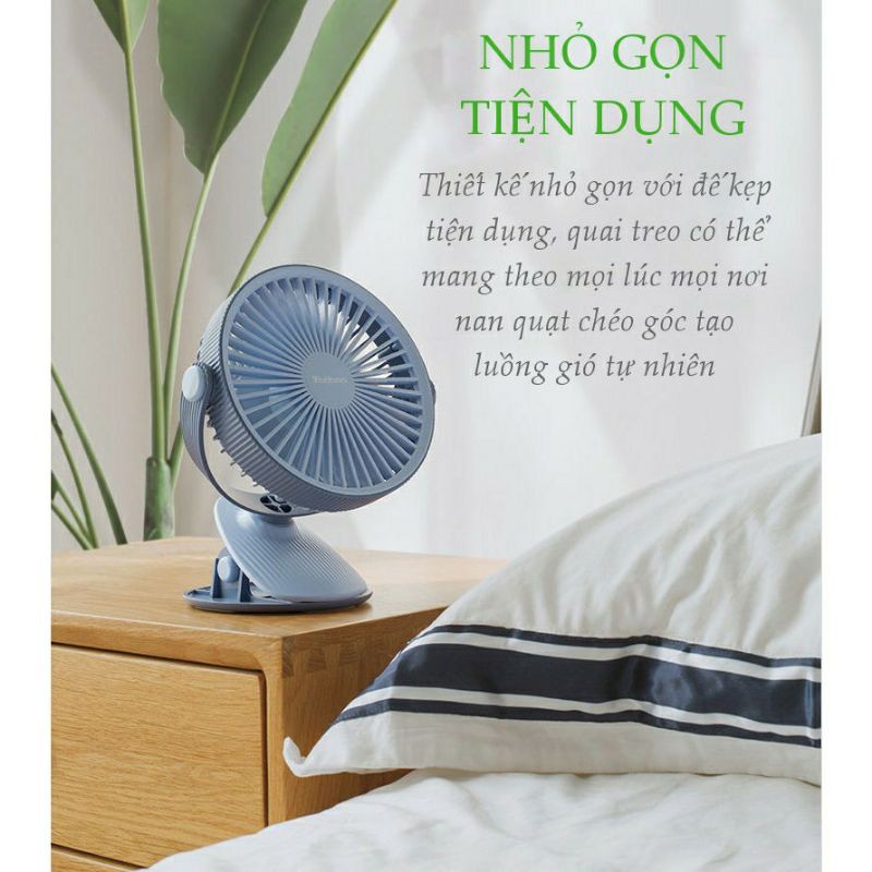 Quạt tuần hoàn không khí điều khiển lưu thông không khí trong nhà bằng cách thổi khí. Nó có thể được sử dụng với máy điều hòa không khí hoặc máy sưởi để làm mát nhanh hoặc làm nóng khu vực để cân bằng nhiệt độ phòngQuạt sạc của yoobao tích hợp viên pin 2000 mAh cho thời gian sử dụng đến 16h (ở chế độ quạt nhẹ) trong các loại quạt mini hiện nay mà vẫn rất nhỏ gọn.