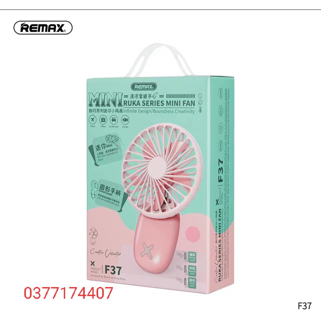 Điện Thoại & Phụ Kiện > Phụ kiện > Quạt USB & Quạt điện thoại || [Mã ELHA22 giảm 5% đơn 300K] Quạt mini Remax F37 Cầm tay - 3 tốc độ gió - Siêu mát ( Chính Hãng ) - Có bảo hànhCòn hàng