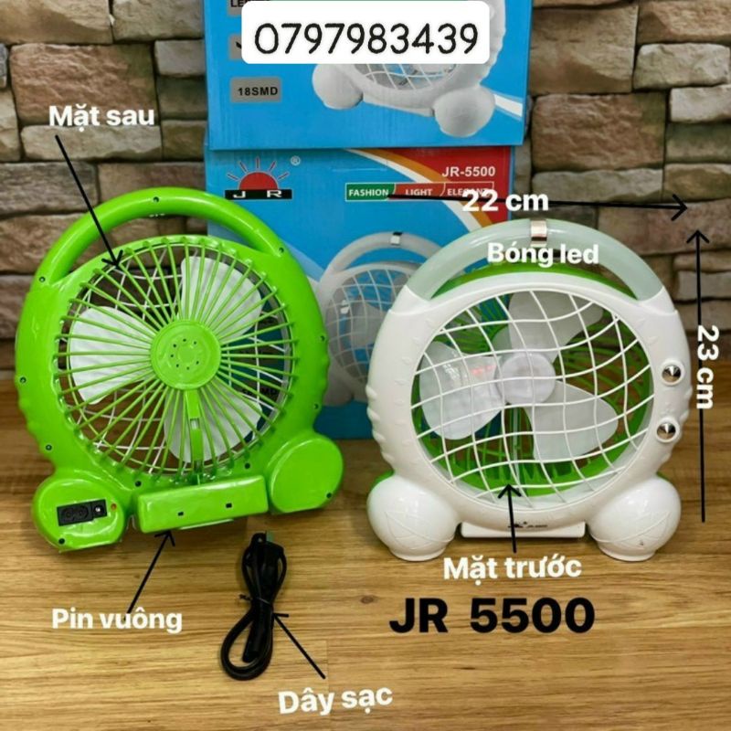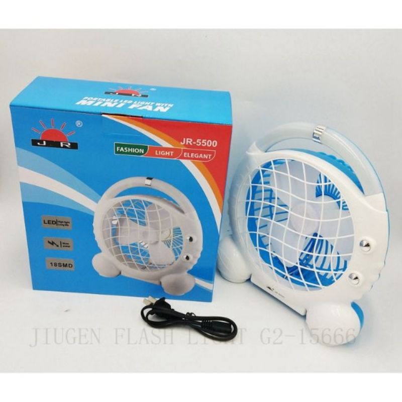 Quạt sạc điện kiêm đèn pin Mini Fan JR-5500– Quạt sạc kiêm đèn sạc đa chức năng JR5500 vừa có chức năng quạt mát với 2 tốc độ gió, vừa có chức năng đèn thắp sáng với 2 chế độ sáng.