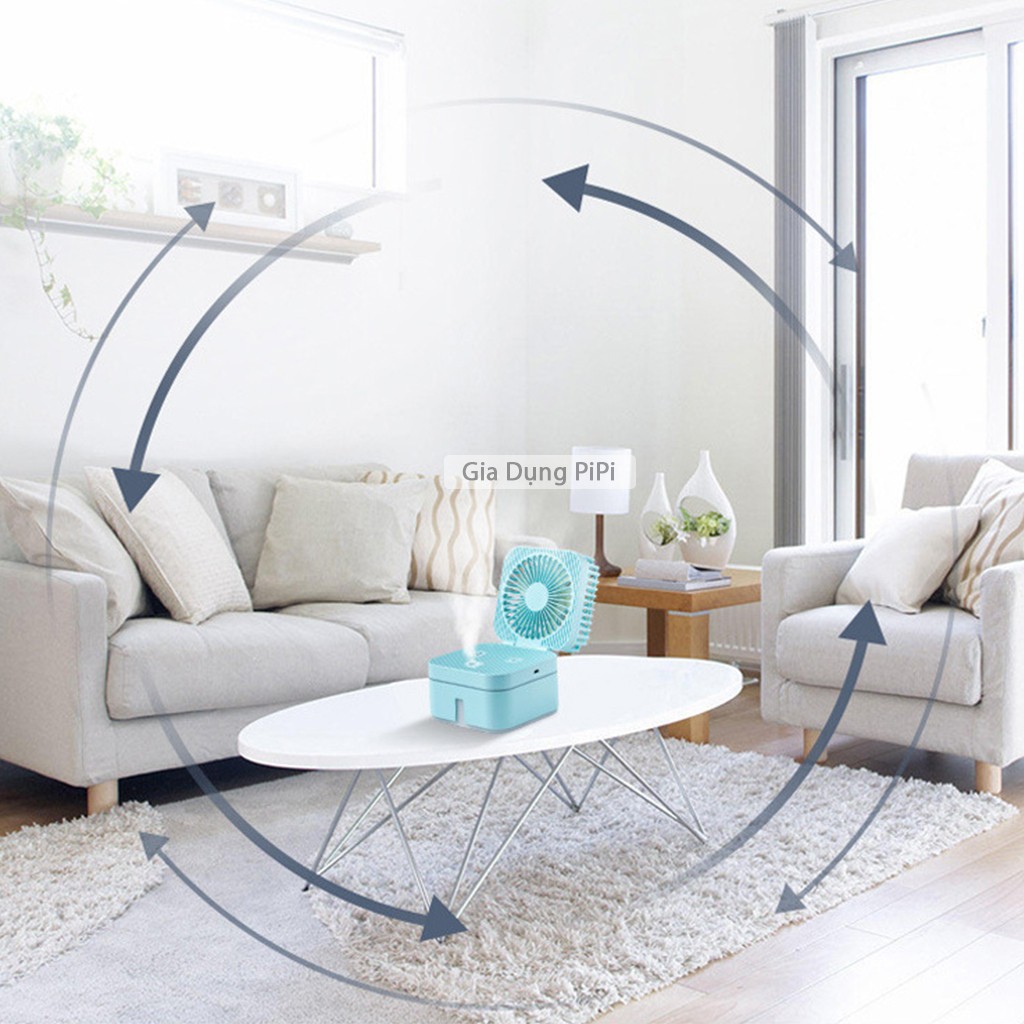 - Quạt phun sương mini tạo ẩm, thiết kế hai trong một, mang đến cho bạn luồng gió mát đồng thời tăng độ ẩm cho không khí.