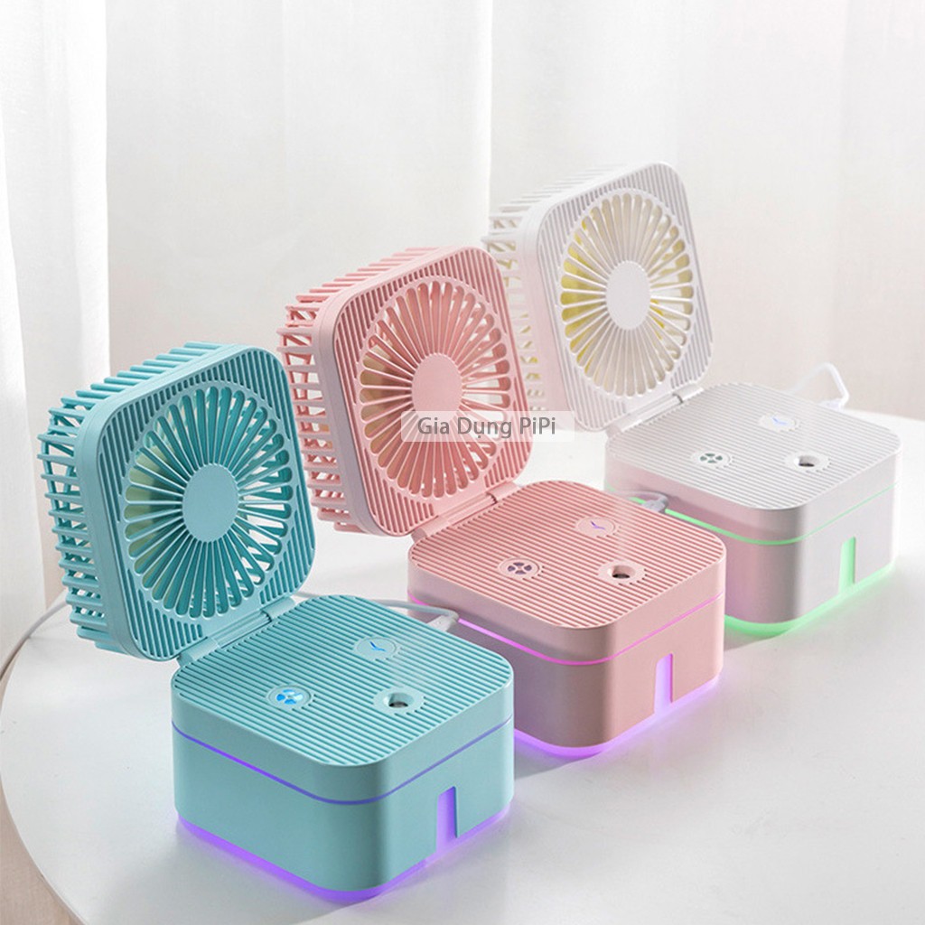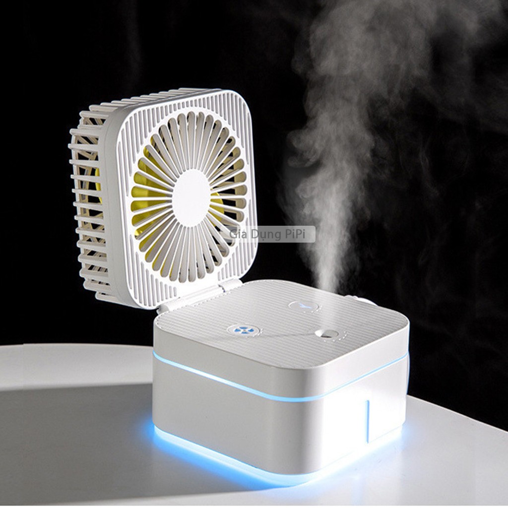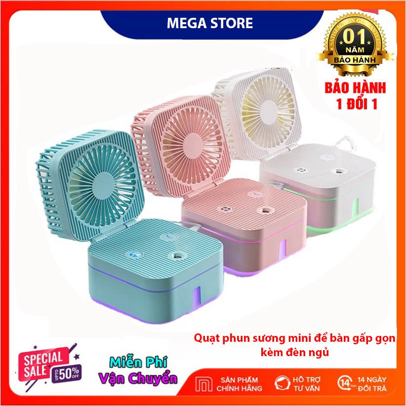 Giới thiệu [Mã ELHA22 giảm 5% đơn 300K] Quạt phun sương mini để bàn gấp gọn đa năng đầu kết nối usb có đèn ngủ