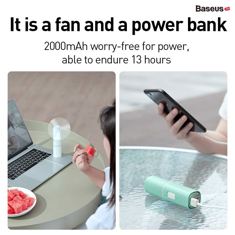 Giới thiệu [Mã ELHA22 giảm 5% đơn 300K] Quạt cầm tay mini tích hợp pin dự phòng 2000mah Baseus B02 chính hãng