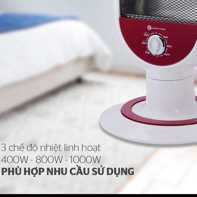 Sưởi điện hồng ngoại SUNHOUSE SHD7022 có 3 mức công suất 400W, 800W, 1200W điều chỉnh bằng núm xoay linh hoạt theo 2 chiều giúp bạn lựa chọn được mức nhiệt phù hợp với môi trường và nhu cầu sử dụng.