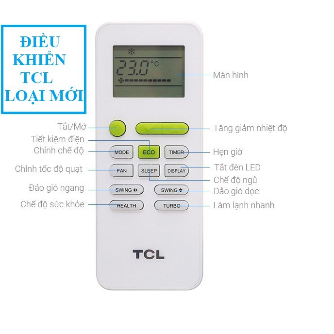 Giới thiệu [Mã ELHA22 giảm 5% đơn 300K] Tay khiển điều hoà TCL loại mới (3 phím xanh )-Bh đổi mới -tặng kèm pin