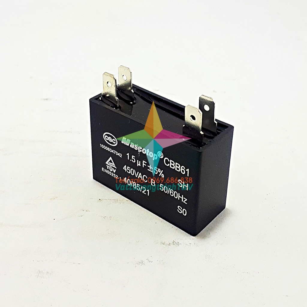 Tụ quạt CBB61 Mascotop 1.5uF +-5%Hãng sản xuất: MASCOTOP