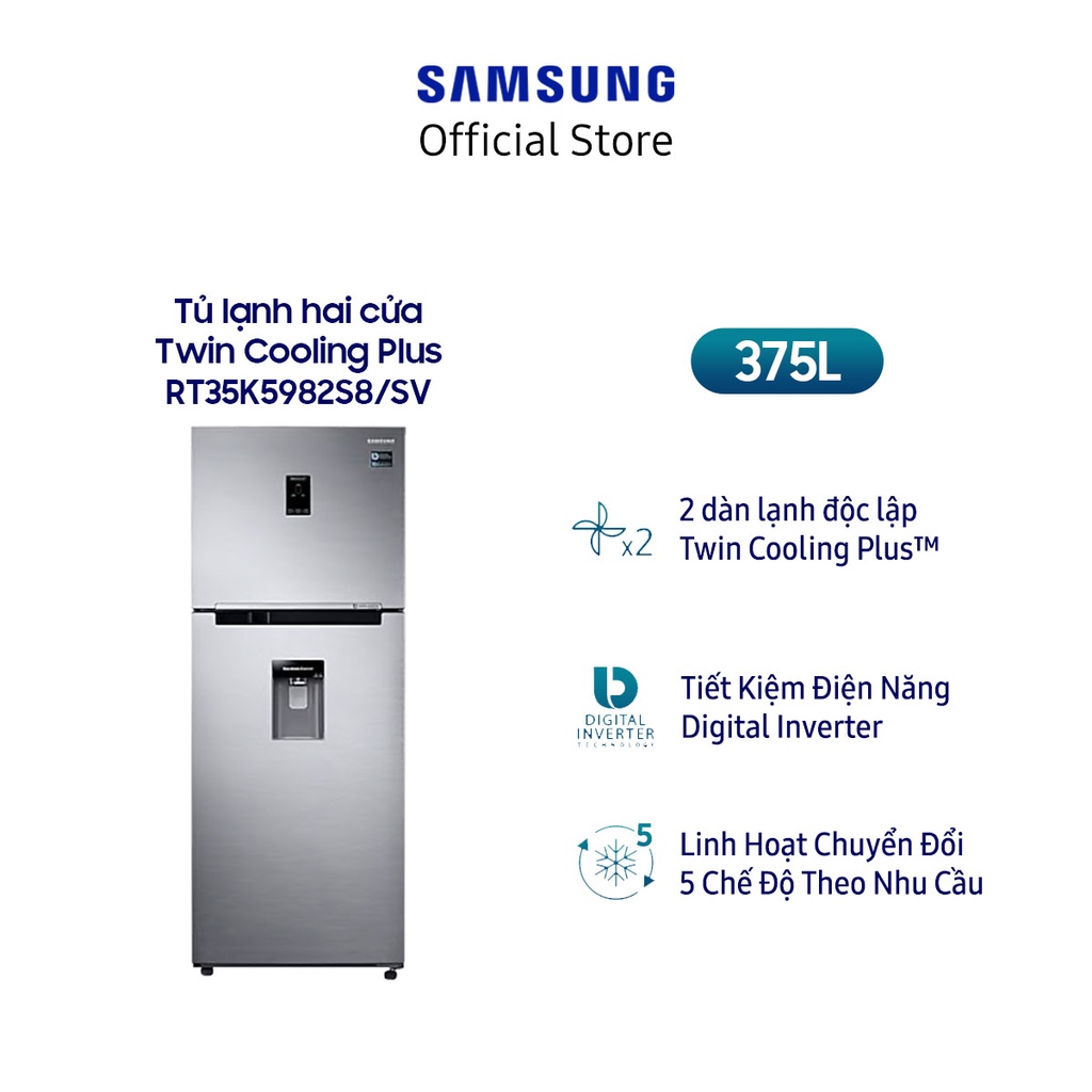 [Mã ELHA22 giảm 5% đơn 300K] Tủ lạnh SamSung hai cửa Twin Cooling Plus 360L (RT35K5982S8)