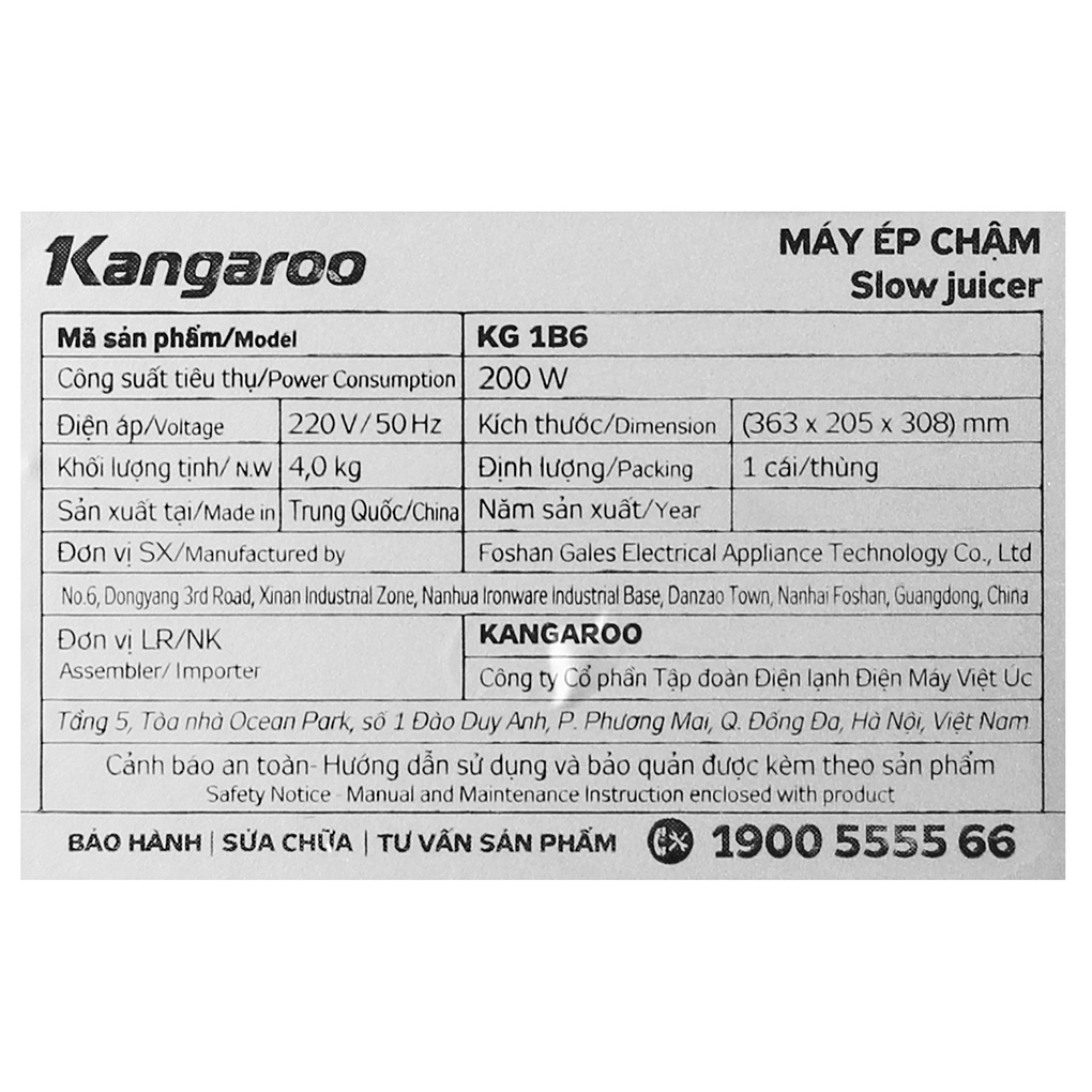 Máy ép chậm Kangaroo KG1B6 ra mắt năm 2020 của thương hiệu lâu năm Việt Nam - Kangaroo, sản xuất tại Trung Quốc, nước ép được nhiều nước ép, dùng bền tốt, an toàn cho sức khỏe, tiện dụng, thích hợp cho gia đình, quán ăn, nhà hàng.
