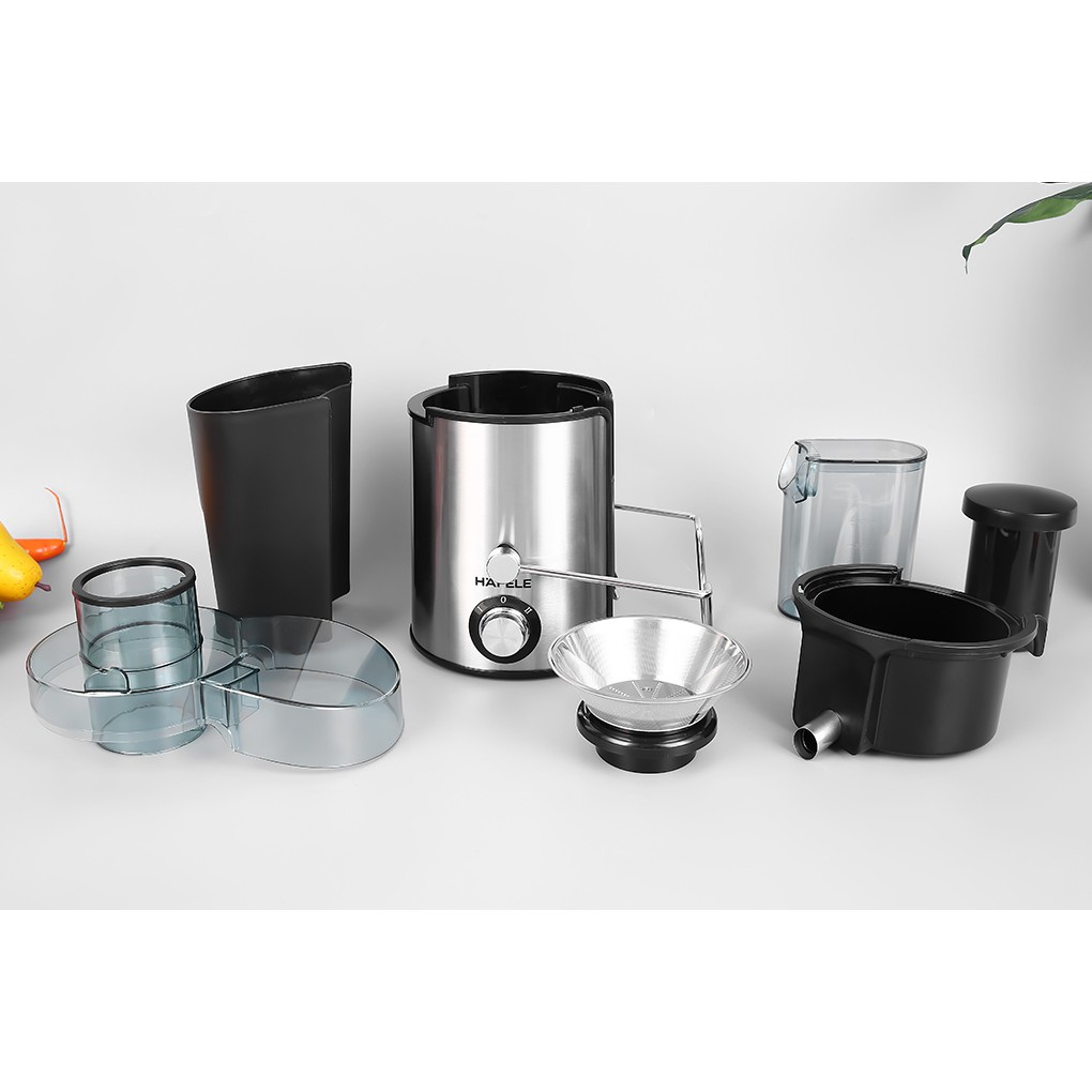 Máy ép trái cây Hafele kèm cốc chứa bả dung tích 1.4 lít và bình đựng nước trái cây 500 ml phù hợp cho ly nước ép thơm ngon cho gia đình và các hàng quán giải khát.