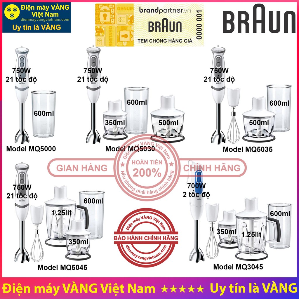 🤚 CAM KẾT HÀNG CHÍNH HÃNG 100% 💯🔵 Với mong muốn có cái nhìn tổng quát về các Model phổ thông của máy xay cầm tay Braun. Điện máy VÀNG Việt Nam tạo ra mã hàng mà ở trong đó có tương đối đầy đủ các thông tin về máy xay Braun để Quý khách có thể so sánh các model trước khi quyết định mua để phù hợp với nhu cầu sử dụng.