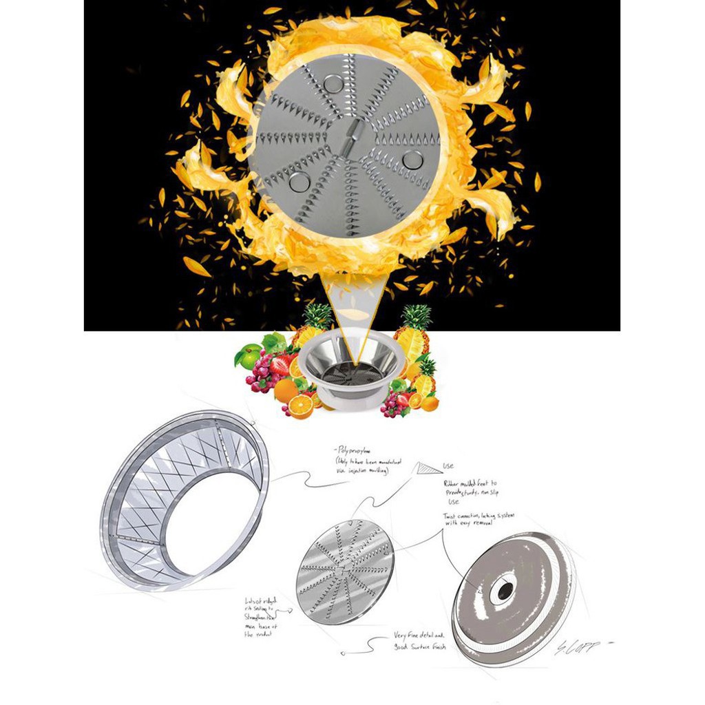 - Lưỡi dao bằng thép không gỉ cùng công suất mạnh mẽ dễ dàng ép mọi loại trái cây