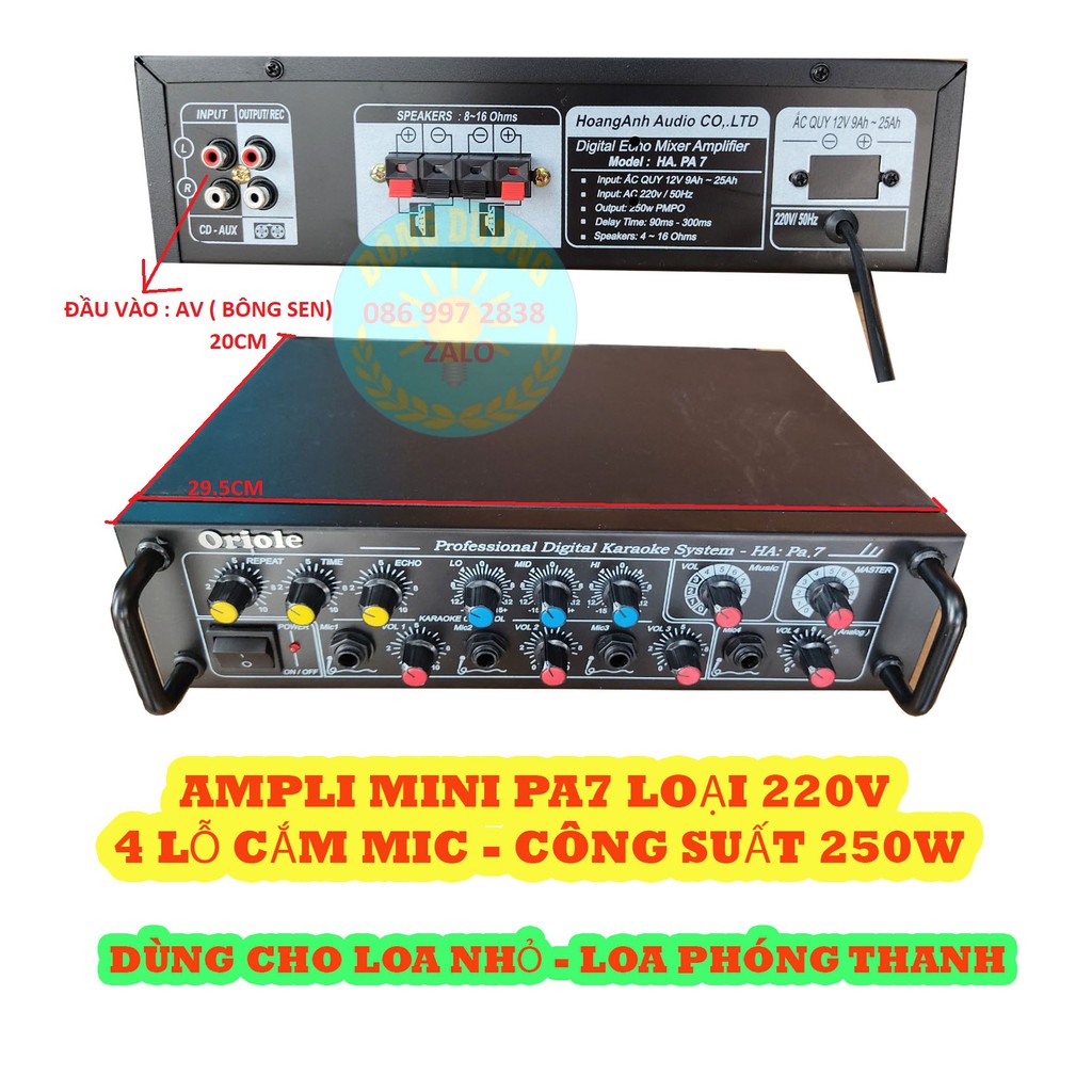[Mã ELHACE giảm 4% đơn 300K] AMPLI ORIOLE PA7 220V - CÔNG SUẤT 250W - HÀNG CHÍNH HÃNG ORIOLE