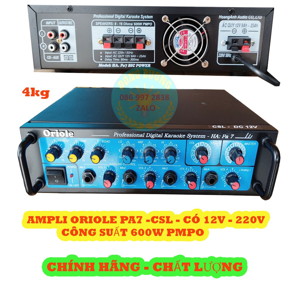 [Mã ELHACE giảm 4% đơn 300K] AMPLI MINI PA7 LOẠI CÔNG SUẤT LỚN 600W - CÓ DC 12V VÀ AC 220 - HÀNG CHÍNH HÃNG ORIOLE