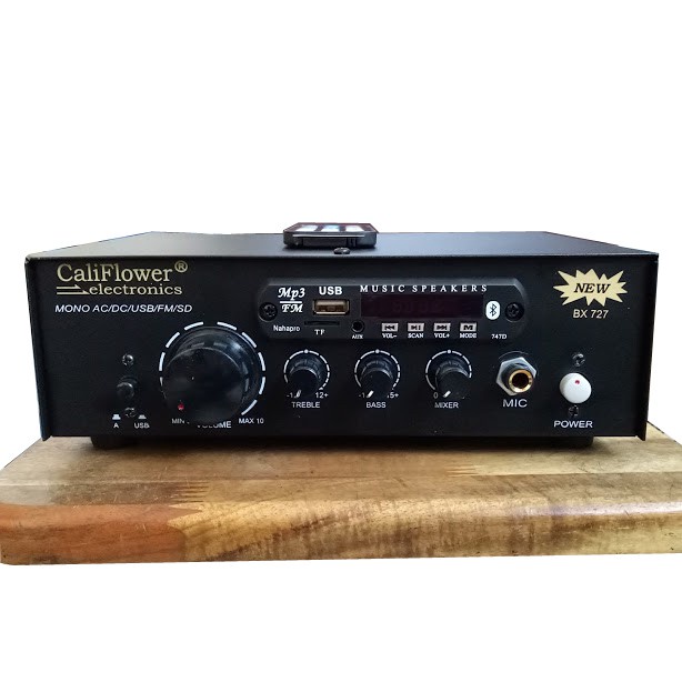 Giới thiệu Amply Karaoke mini AC / DC 12V bluetooth / USB / thẻ SD / Radio CALIFLOWER BX727