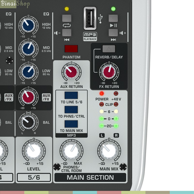 Thiết Bị Âm Thanh > Amply và đầu chỉnh âm || [Mã ELHACE giảm 4% đơn 300K] Bàn Trộn Micro 6 Cổng Có Hiệu Ứng, Hỗ Trợ USB Chơi Nhạc Mp3 Behringer QX602MP3Còn hàng