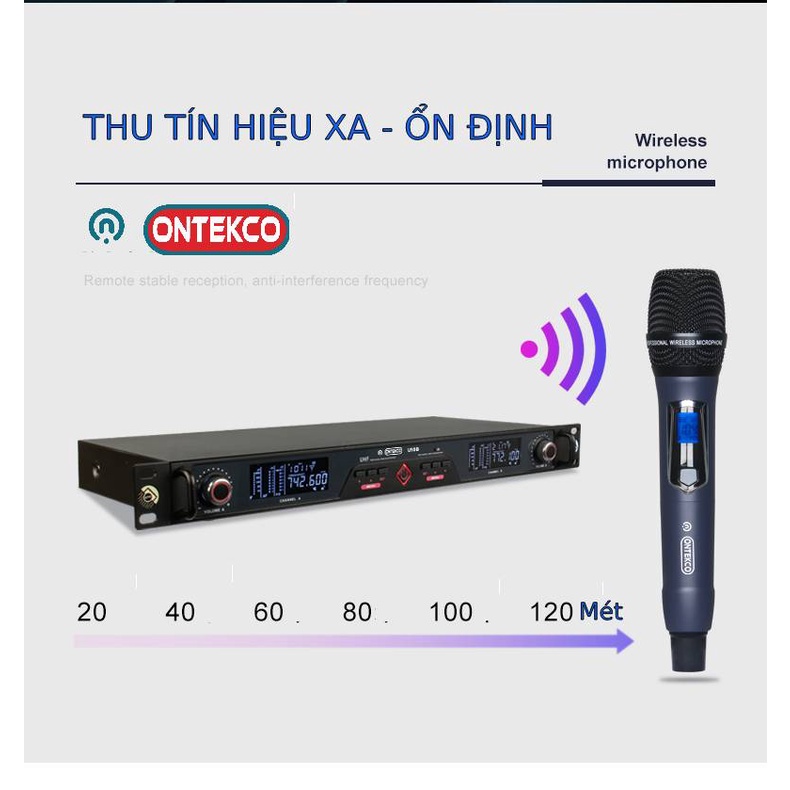 Giới thiệu [Mã ELHACE giảm 4% đơn 300K] [BẮT SÓNG 120 MÉT] Bộ micro không dây ONTEKCO U10b hát karaoke cao cấp chính hãng