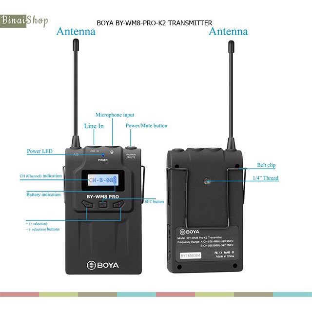 - 2 Transmitter, phục vụ ghi hình phỏng vấn, quay phim talk-show với DSLR, smartphone hoặc camcorder.