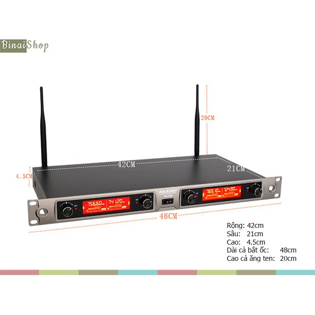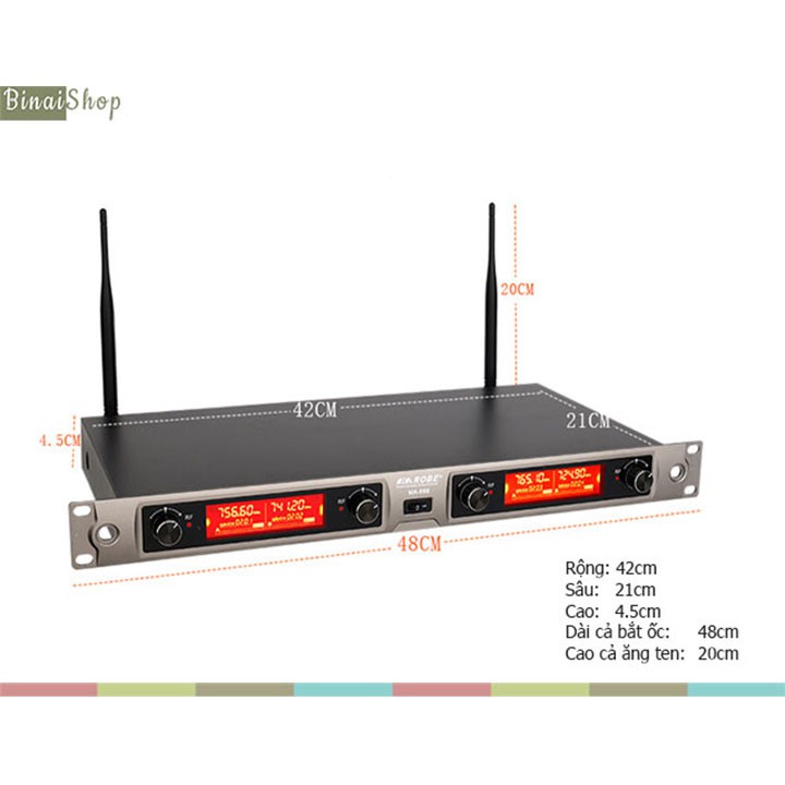 + Màn hình Led hiển thị tần số sóng và tình trạng hoạt động của từng mic riêng biệt.