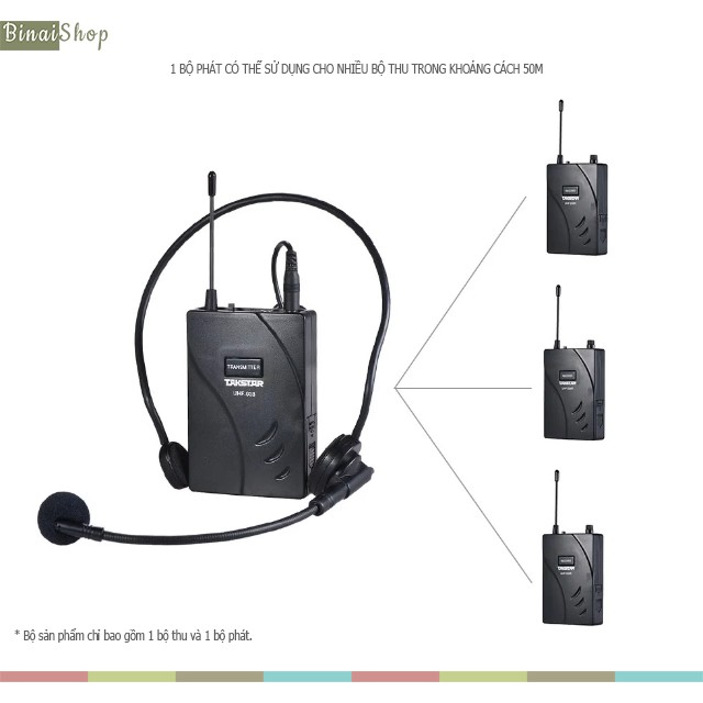 - Micro cho hướng dẫn viên du lịch Takstar UHF-938 sử dụng dải tần UHF với công nghệ tổng hợp tần số PLL đảm bảo kênh sóng luôn hoạt động ổn định trong cự ly khoảng 60m.