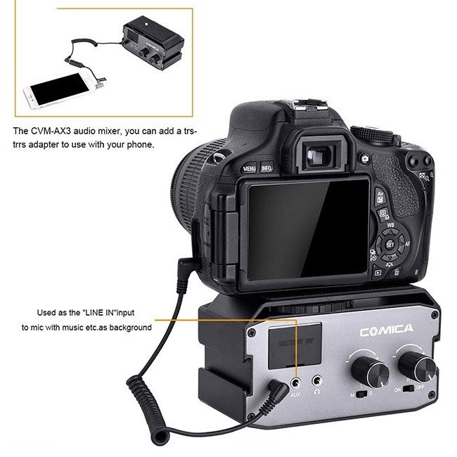 Thiết Bị Âm Thanh > Micro thu âm || [Mã ELHACE giảm 4% đơn 300K] Mixer Nguồn 48v Cho Máy Ảnh, Máy Quay Comica CVM-AX3 - Hàng Chính HãngCòn hàng