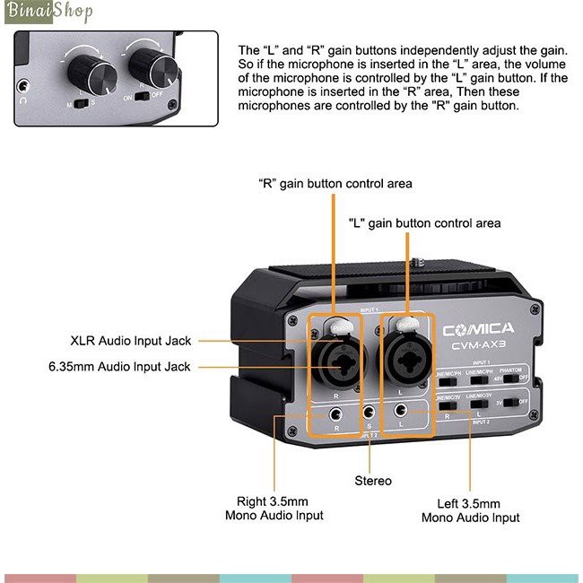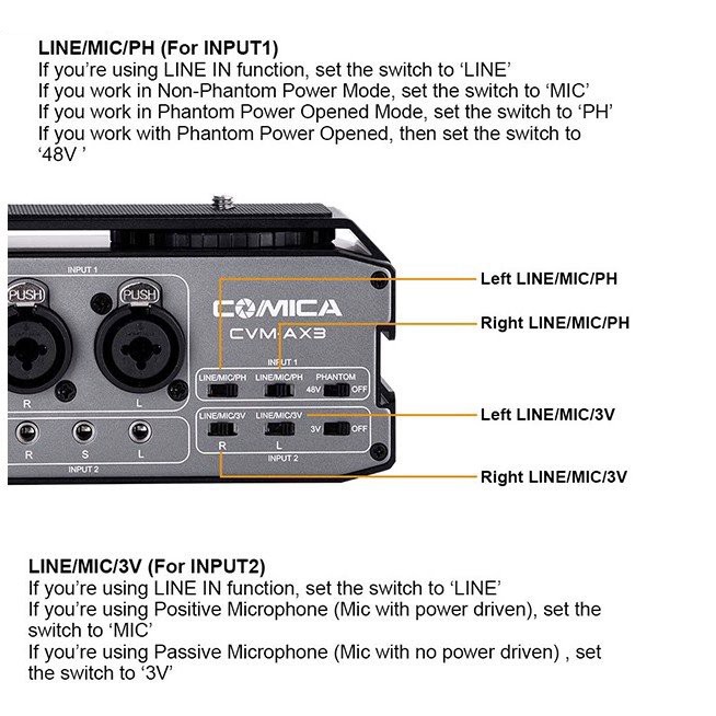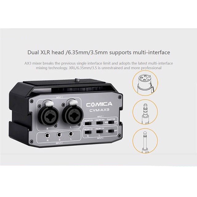 Giới thiệu [Mã ELHACE giảm 4% đơn 300K] Mixer Nguồn 48v Cho Máy Ảnh, Máy Quay Comica CVM-AX3 - Hàng Chính Hãng