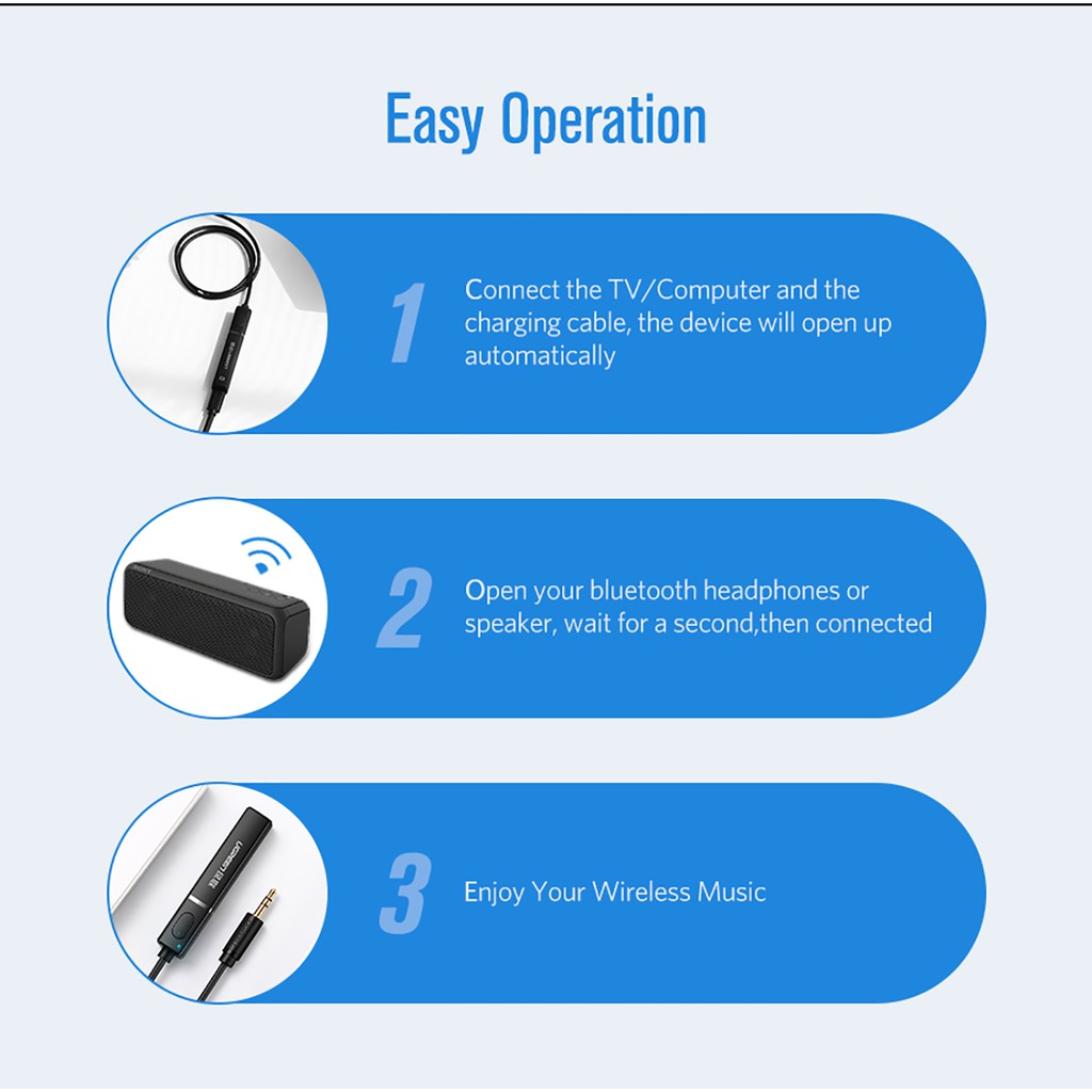 - Tính năng: Kết nối phát Bluetooth âm thanh cổng 3.5mm dùng cho Tivi, android box, đầu dvd...