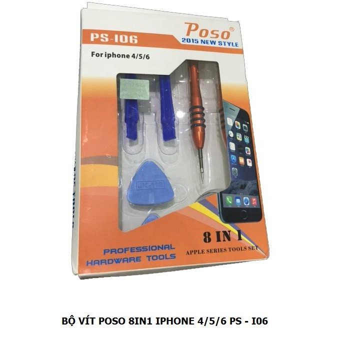 Giới thiệu [Mã ELHACE giảm 4% đơn 300K] Bộ vít mở iphone 4/5/6 Poso PS-106 (Đen) POSO PSI06