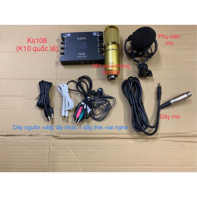 [Mã ELHACE giảm 4% đơn 300K] Bộ thu âm ks108( k10 quốc tế) mic woaichang bm900 tặng tai nghe