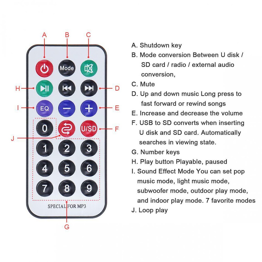 Phát nhạc MP3 từ thẻ TF, đĩa U, Bluetooth.