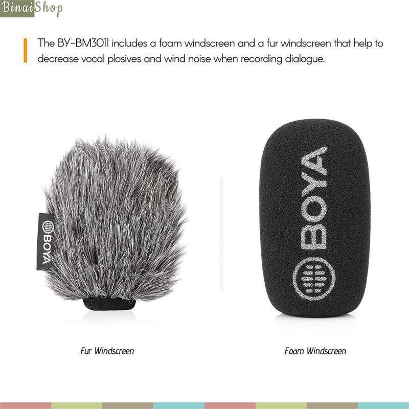 BOYA BY-BM3011 là condenser microphone định hướng, có độ nhạy cao và ít bị nhiễu, có thể sử dụng cho nhiều thiết bị khác nhau như smartphone, máy ảnh DSLR, máy quay, máy ghi âm,... Micro phù hợp cho Vloggers, Youtuber