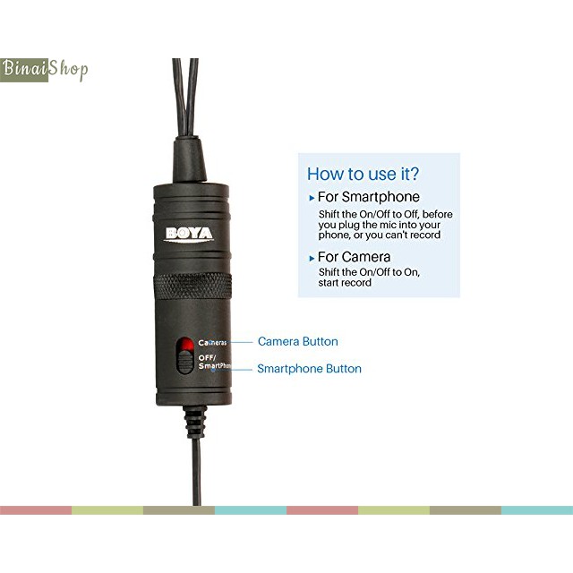 - Micro gài áo Boya BY-M1DM là sản phẩm mic cài áo nhỏ gọn, tương thích với mọi loại smartphone, máy tính bảng, máy ghi âm, máy quay, máy ảnh, Pc, laptop...