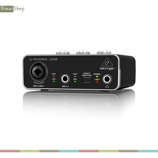 - Soundcard Behringer U-Phoria UM2 có 1 ngõ vào âm thanh cho microphone 48v (Mic/Line 1 ) và 1 ngõ vào âm thanh cho nhạc cụ (Inst-2)