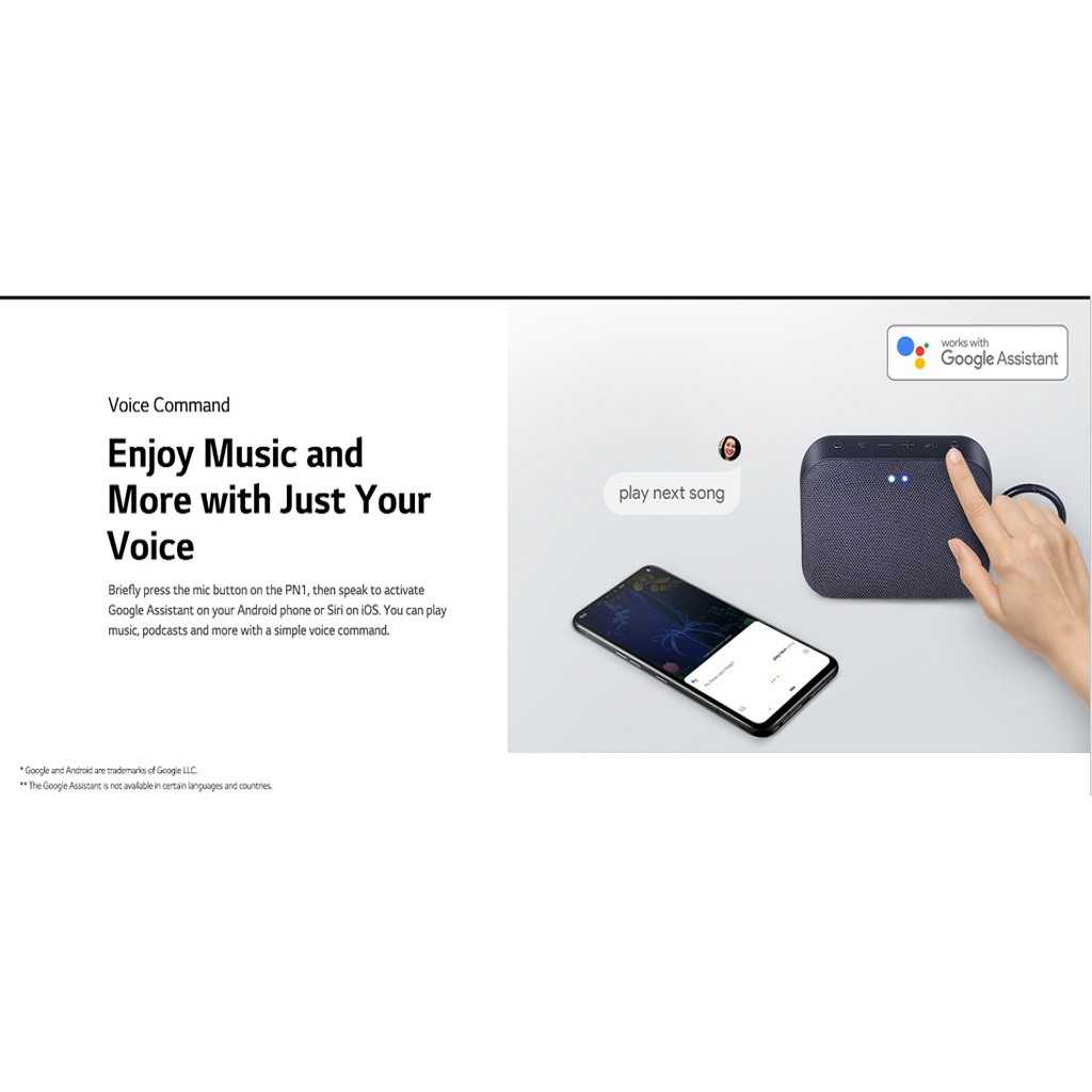 Nhấn nhanh nút mic của loa PN1, sau đó nói để kích hoạt Google Assistant trên điện thoại Android hoặc Siri trên iOS. Bạn có thể bật nhạc, bật phát thanh và các chức năng khác mà chỉ cần dùng lệnh bằng giọng nói.