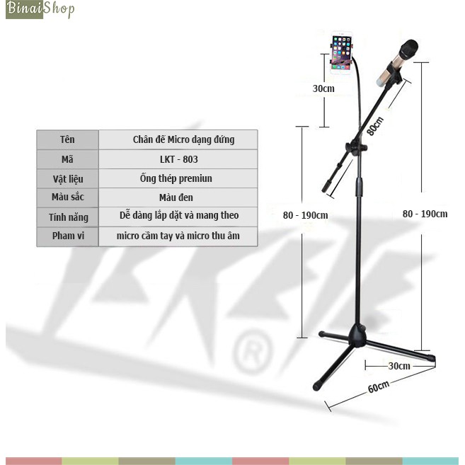 Thiết Bị Âm Thanh > Micro thu âm || [Mã ELHACE giảm 4% đơn 300K] Chân đế micro đứng LKT-803 (Đen)Còn hàng